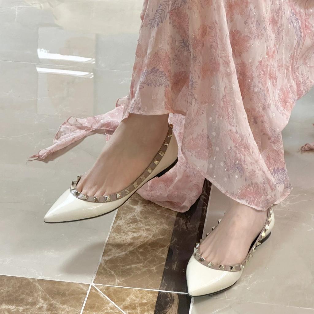 Rindslederversion~ Klassische Nietleder flachmündige spitze Schuhe Damen OL-Schuhe weiche Sohle Mary Jane Einzelne Schuhe flacher Boden kleine Lederschuhe