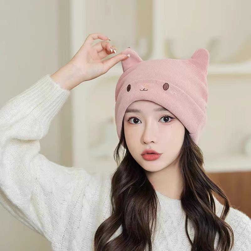 Atmungsaktive Damenstrickmütze aus Wolle für Herbst & Winter: Große Größe, Kleines Gesicht-Effekt, Wochenbett- und Schwangerschaftshut.