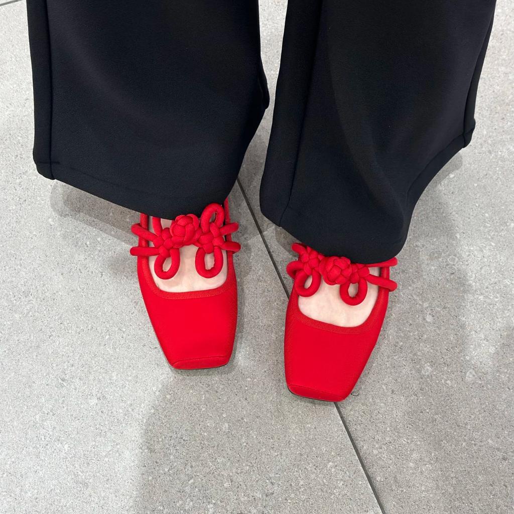 Schafslederversion~ Superweichsohlige Leder rote Mary Jane Einzelschuhe Damen Frühling neu Chinesischer Knoten flachsohlige Ballerinas Damenschuhe