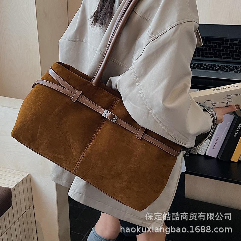 Large capacity casual temperament commuter tote bag 2025 trendy women's Korean version ins shoulder bag fashion trendy high sense