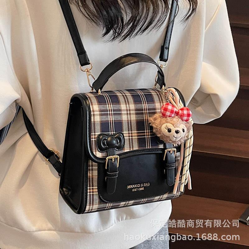 Commuter backpack for women 2025 new niche versatile plaid schoolbag fashion travel high-end small backpack