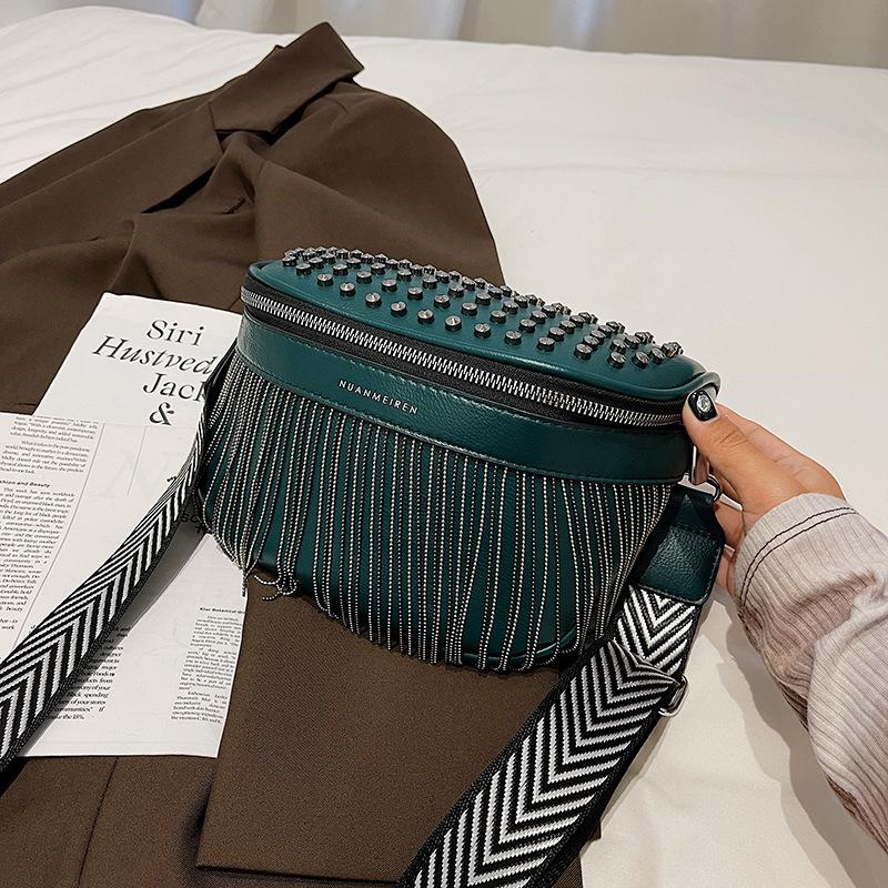Wholesale women's fanny pack 2025 new European and American fashion rivet diagonal span breast bag trendy versatile wide shoulder strap single shoulde