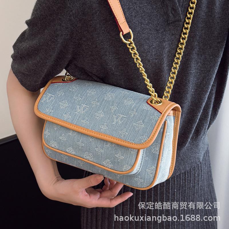 Denim bag women's summer 2025 new fashion niche design messenger bag high-end chain shoulder small square bag