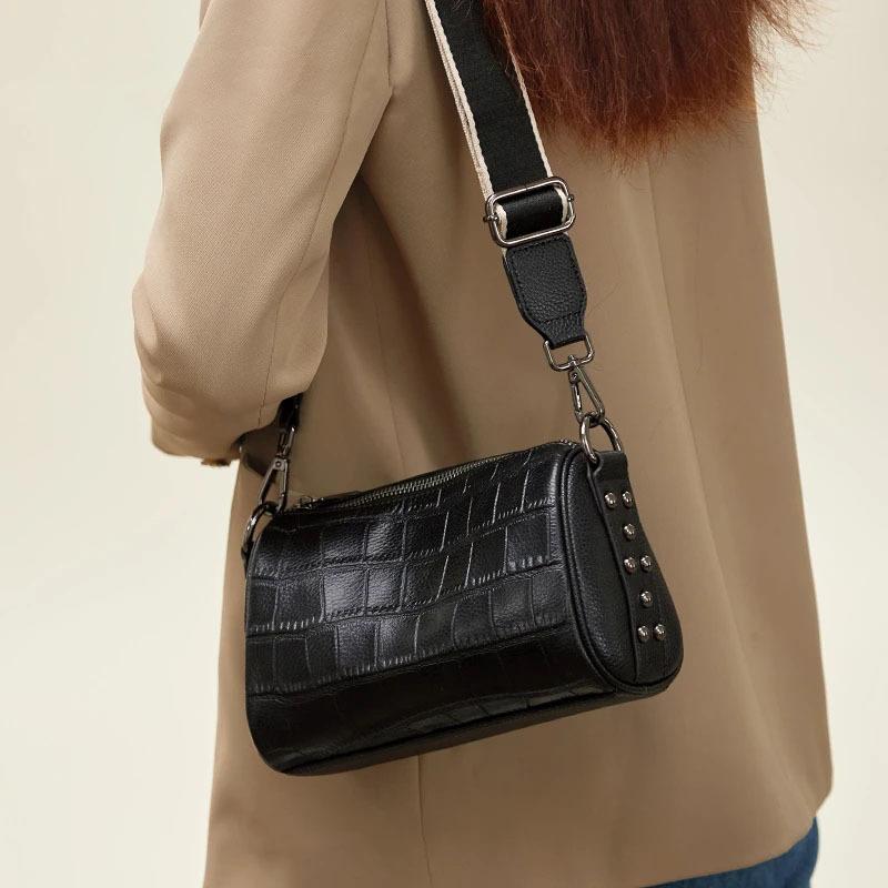 A High-end Genuine Leather Cylindrical Pillow Bag for Women, A Crocodile-patterned Cowhide Single-shoulder Crossbody Bag