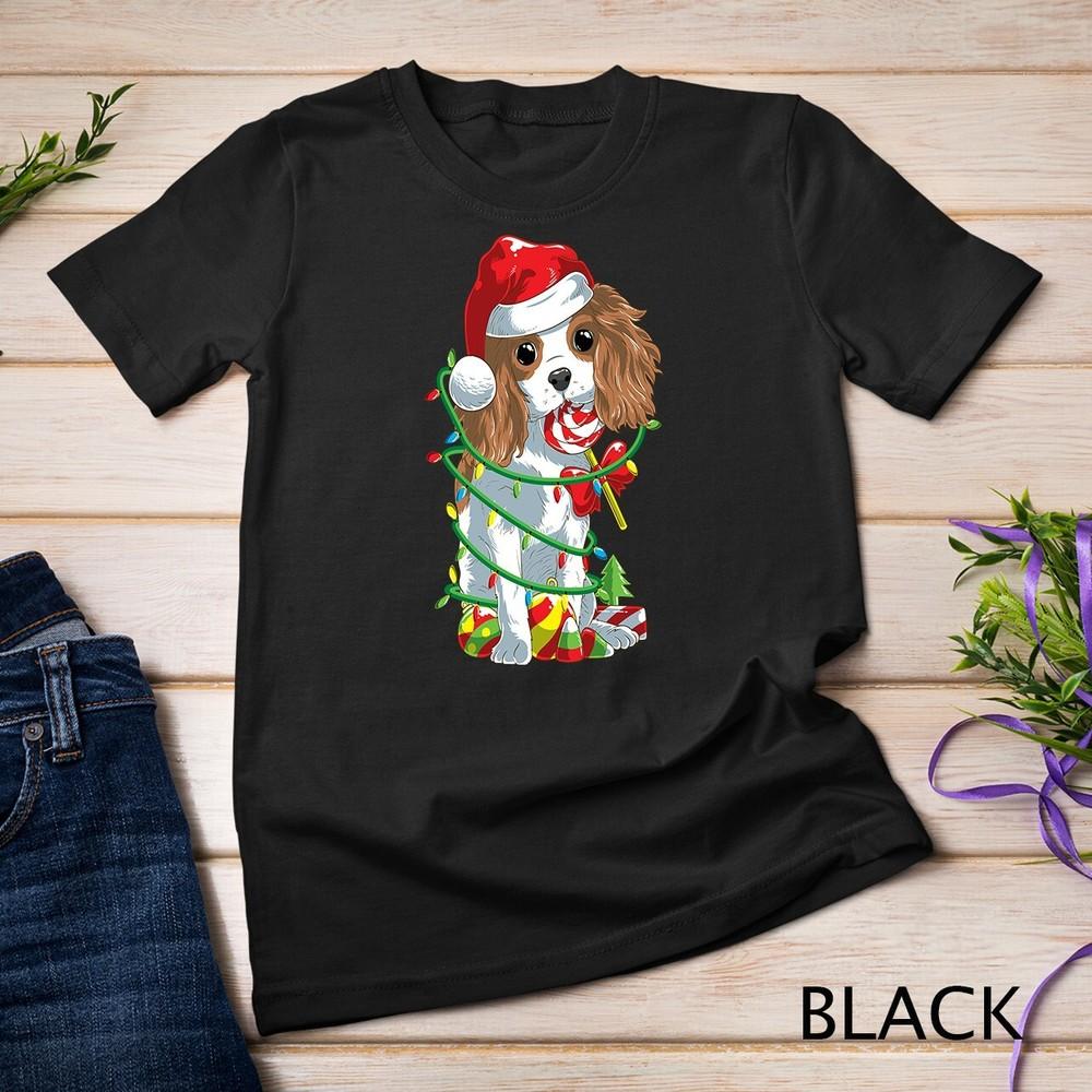 Niedlicher Cavalier King Charles Spaniel Hund Weihnachtsbaum Lichter Unisex T-Shirt