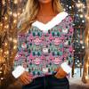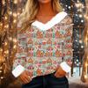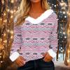 Damen Modisches Lässiges V-Ausschnitt Weihnachts-Print Langarm-Oberteil