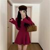 Herbst Winter V-Ausschnitt Elegant Mode Strick Mini Kleid Damen Langarm Allround Unterkleid Robe Vestidos