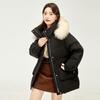 Xuezhongfei Damen Kurze Winter Daunenjacke mit Kapuze und Pelzkragen