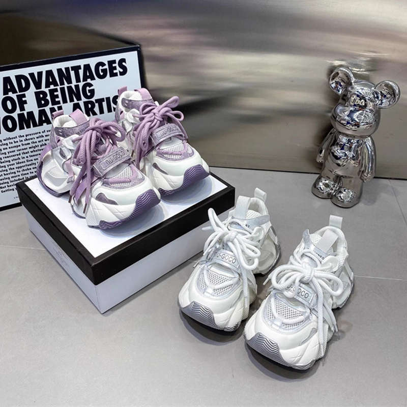 Lila dicksohlige, innen höhenvergrößernde Dad-Schuhe Damenschuhe Herbst neu Mesh atmungsaktiv vielseitige Sportschuhe Damen