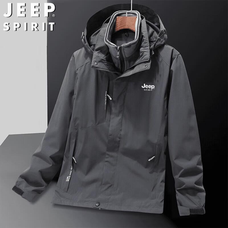 JEEP SPIRIT Men's 3-in-1 Spring/Autumn Hooded Outdoor Jacket