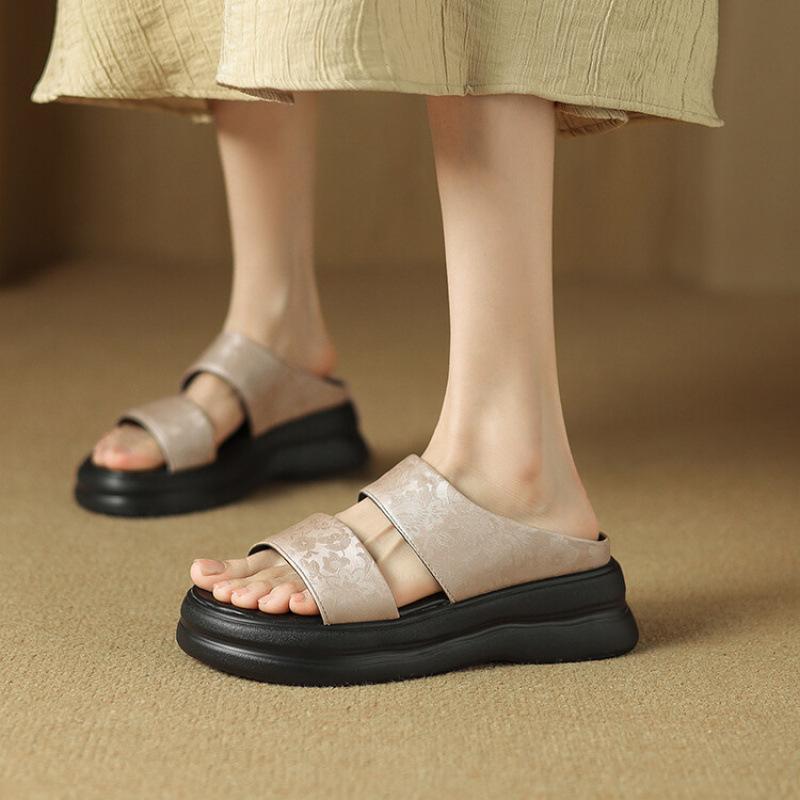 Sommer Hausschuhe für draußen weiche Sohle Größe kühle Hausschuhe Retro runde Zehenpartie zum Reinschlüpfen neue Polyurethan Ein-Wort-Hausschuhe