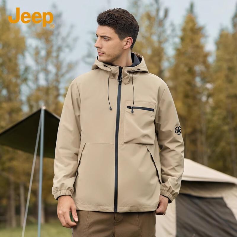 JEEP Men's Spring/Autumn Windproof Hiking Jacket with Detachable Hood