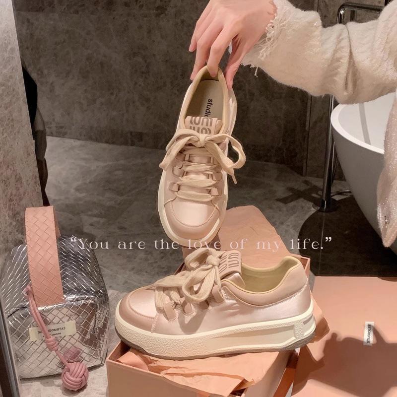 Ein miu no Buch Traube Mutter gleiche Schuhe Creme Satin Lässig Dicke Sohle Schuhe Lässige Sportschuhe Größe 41-44