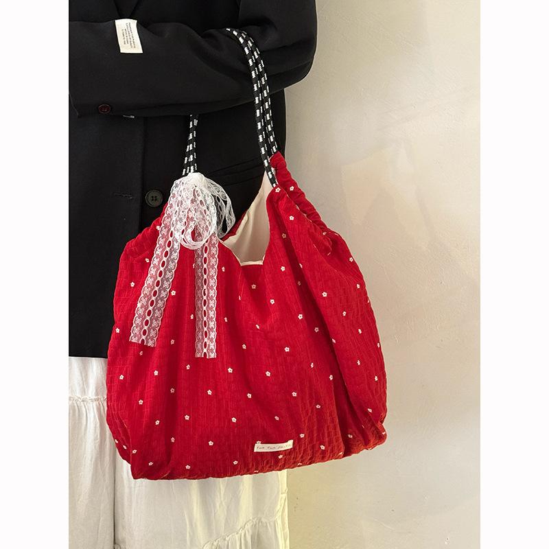 Korean large-capacity polka dot canvas bag, new lazy style commuter shoulder tote bag, niche versatile underarm bag