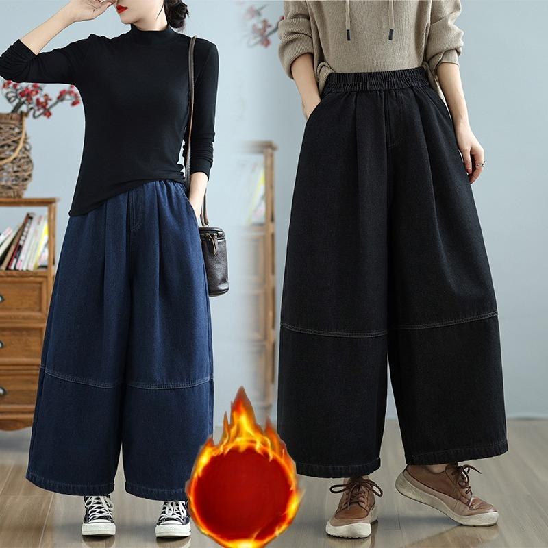 DIMANAF 2025 Herbst Winter Jeans Damen Übergröße Verdicken Futter Vintage Baumwoll-Denim Lange Hosen Unterteile