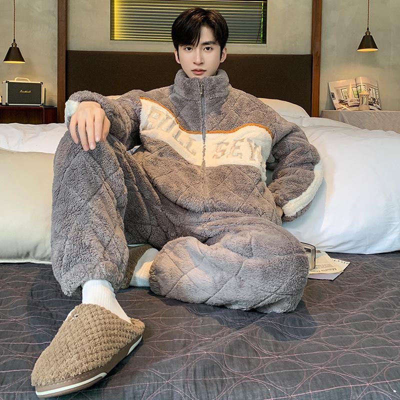 Winter Herren Steppfleece Pyjama Set - Dick, Warm, Jugendliche Homewear und Outdoor-Stil