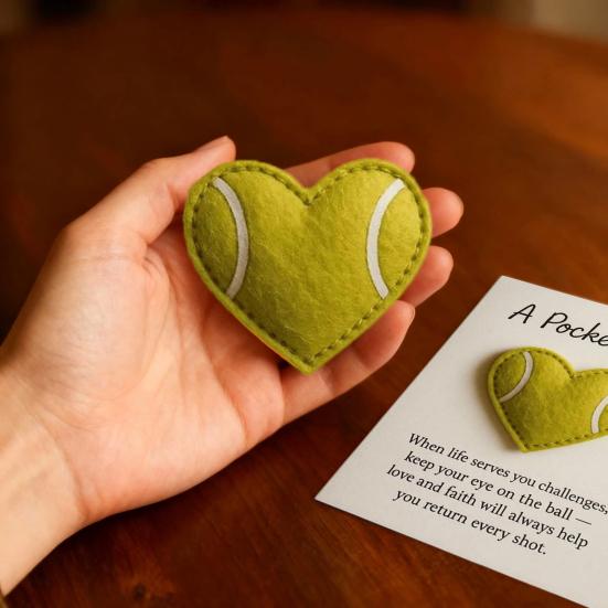 1/2/3Pcs Love Heart Tennis Pocket Hug with Positive Card Emotional Support Heart Shaped Ball Figurine Pocket Token Sports