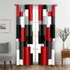 2 Stück Abstrakt geometrische Kunst rot schwarz und grau Modernes Design Lichtfilternde Vorhänge für Wohnzimmer Schlafzimmer Fenster Deko