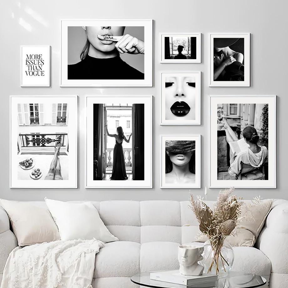 Paris Mode Mädchen Buch Lippe Tür Wandkunst Malerei Schwarzweiß Vintage Poster Bilder Für Wohnzimmer Dekor Leinwanddrucke