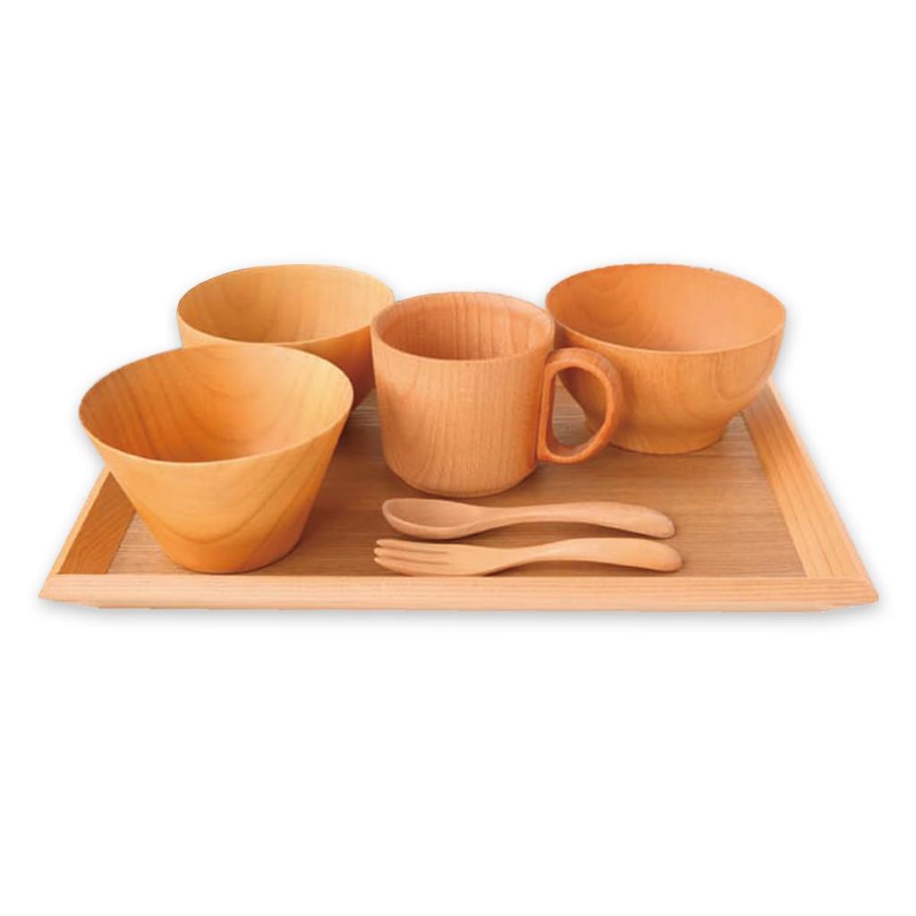 Holzgeschirr für 3-Jährige und Aktuelles Modell J-kitchens 7-teiliges bruchsicheres Kinder-Set, Natur, Up,