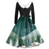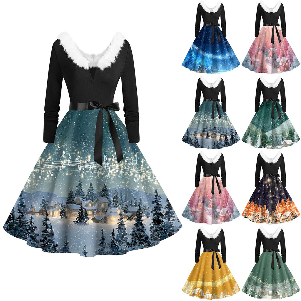 Damenmode V-Ausschnitt Lässig Schlank Weihnachten Bedruckt Langarm Haarkragen Kleider
