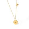 Gold Plated Stainless Steel Pendant Necklace Oval Stone Pendant Neckchain Adjustable Length Clavicle Chain Choker