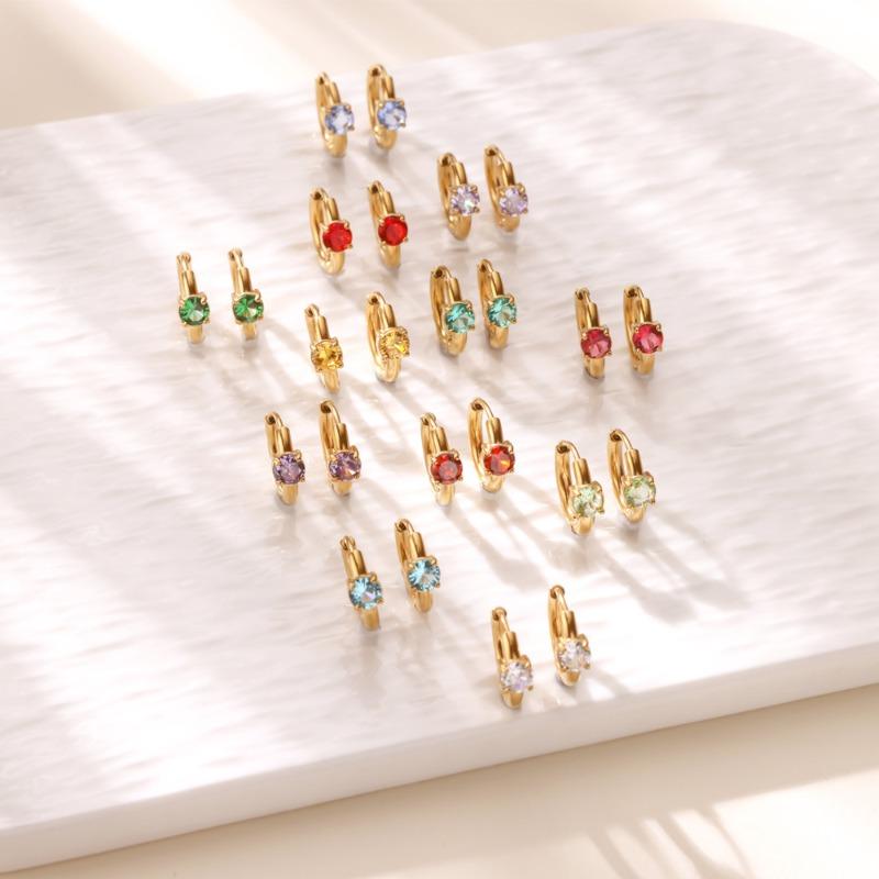 Hot Sale Fashion December Colored Birthstone Earrings Ladies Gold Stainless Steel Premium Earrings Temperament