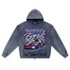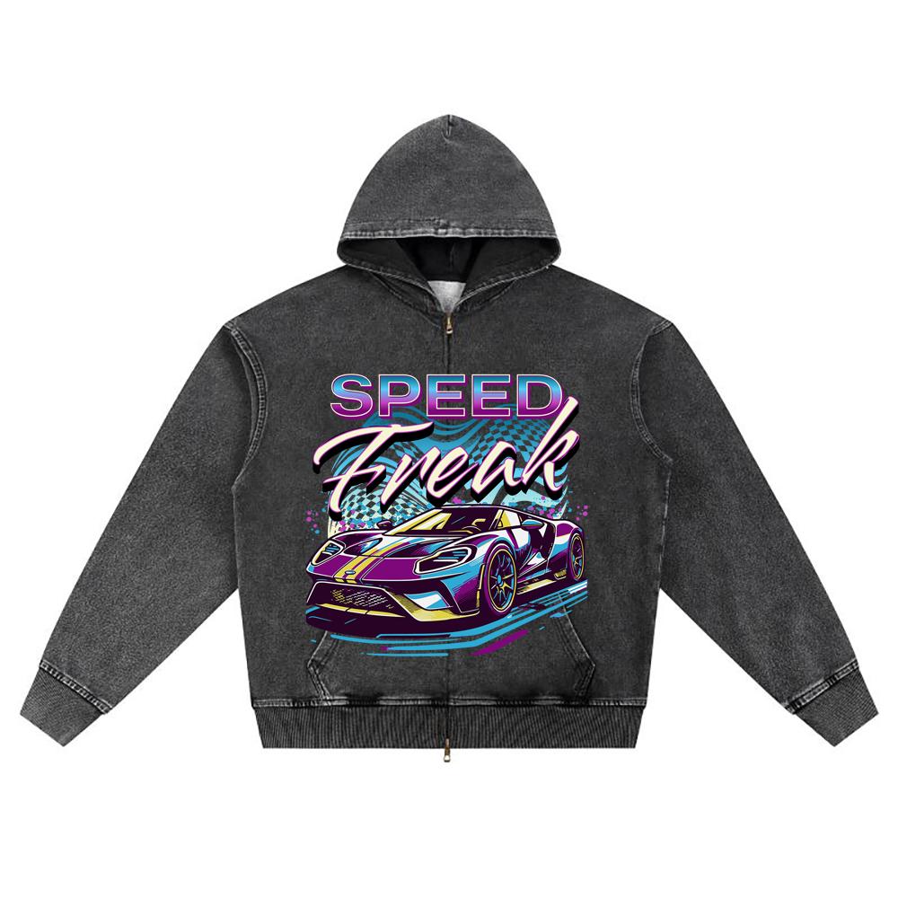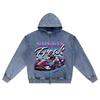 DTG print Knitted Denim Zip-Up Hoodie Speed Freak Neon Street Racing Sports Car Brother Print Zipper Hoodies