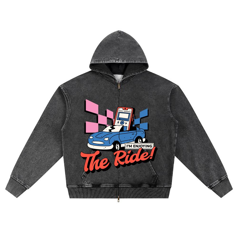 DTG print Knitted Denim Zip-Up Hoodie Enjoyed the Ride Brother Print Zipper Hoodies