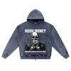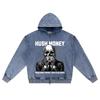 DTG print Knitted Denim Zip-Up Hoodie Skeleton mouth hush money Brother Print Zipper Hoodies