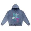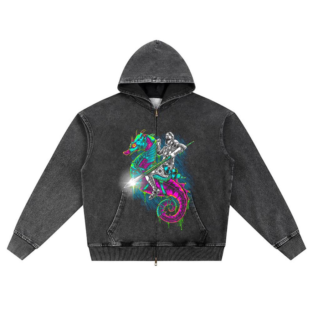 DTG print Knitted Denim Zip-Up Hoodie Caballero de mar Brother Print Zipper Hoodies