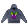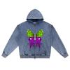 DTG-Druck Gestrickter Denim Reißverschluss Hoodie Schmetterling_Tod Bruder Print Reißverschluss Hoodies