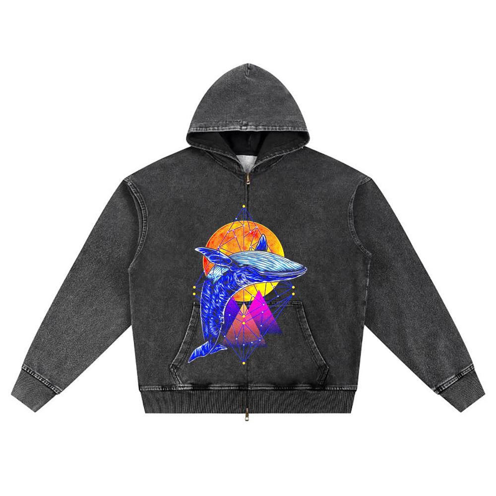 DTG print Knitted Denim Zip-Up Hoodie ballena Brother Print Zipper Hoodies