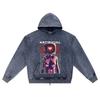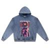 DTG-Druck Strick-Denim Zip-Up Hoodie Künstliche Liebe Bruder Druck Reißverschluss-Hoodies