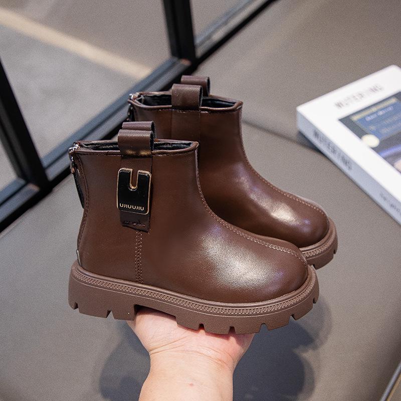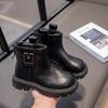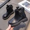 Kinder Herbst/Winter 2025 Schwarze Leder-Knöchelstiefel - Jungen & Mädchen Britischer Stil
