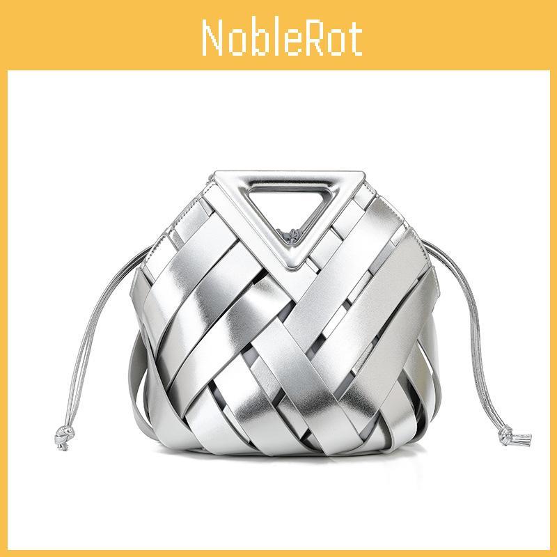 Simple Color Solid Women Casual Woven Drawstring Handbag With Buckle Magnetic