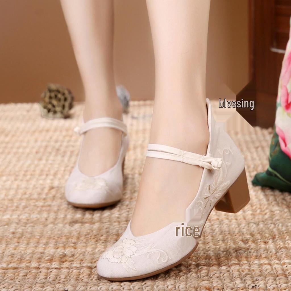 Litaixin Damen Bestickte Klobige Absätze Ethnisch Retro Hanfu Stoffschuhe
