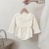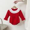Baumwoll-Spitzenbesatz Strick-Body für Babymädchen mit Rüschenkragen