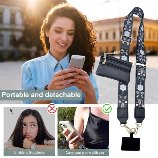 Handygurt mit Reißverschlusstasche, Mini-Kartenhalter, Umhängegurt, Schultergurt, Geldbörse, Länge verstellbar, Clip and Go, Handy-Aufhängegurt