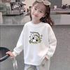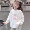Mädchen Weißes Baumwoll-Langarm-Sweatshirt - Leichtes, locker sitzendes Oberteil mit Aufdruck für Frühling/Herbst, vielseitig für mittlere/große Kinder
