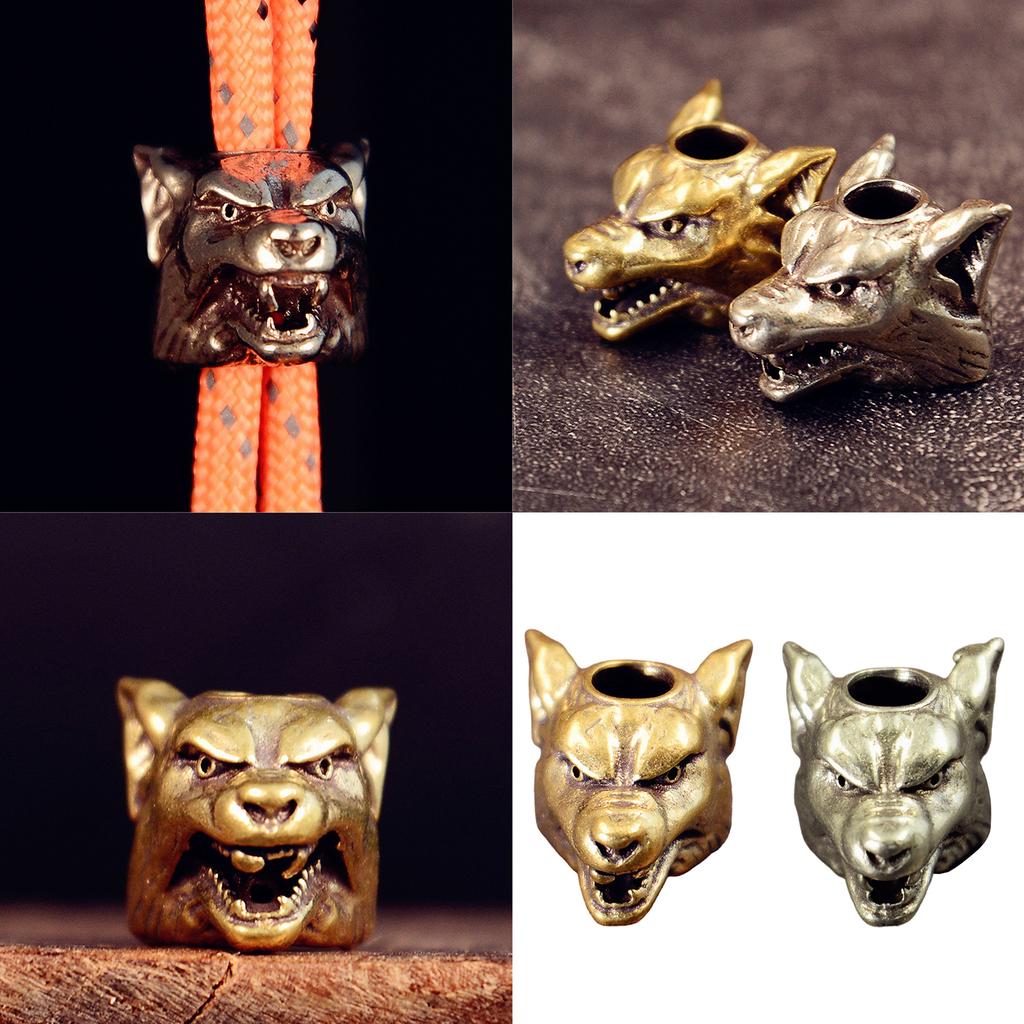 Einzigartiger Messing-Wolfskopf-Anhänger zur Rucksackdekoration Stilvoller Paracord-Schlüsselanhänger-Anhänger Schmuckherstellungszubehör