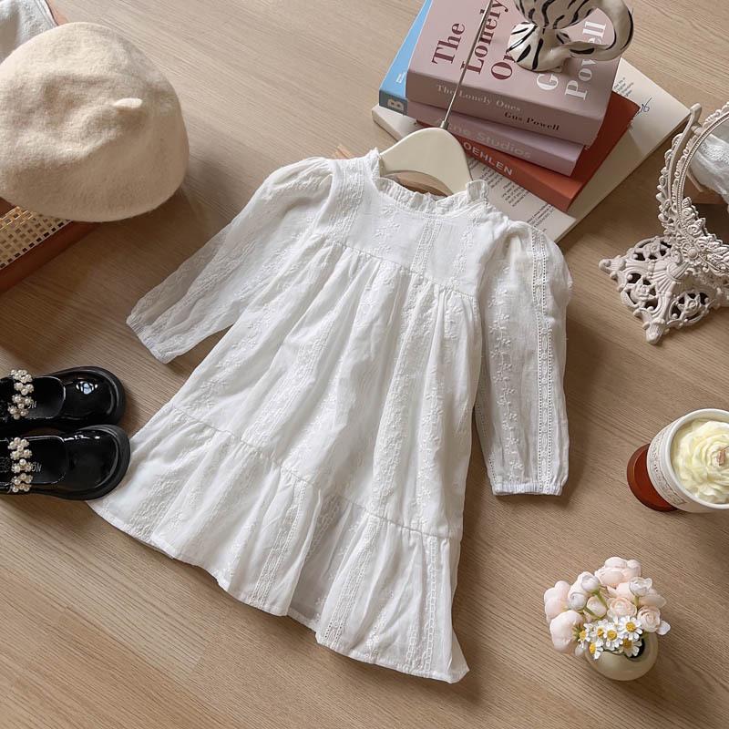 Mädchen Stilvolles Besticktes Langarm Prinzessinnenkleid - Frühling/Herbst