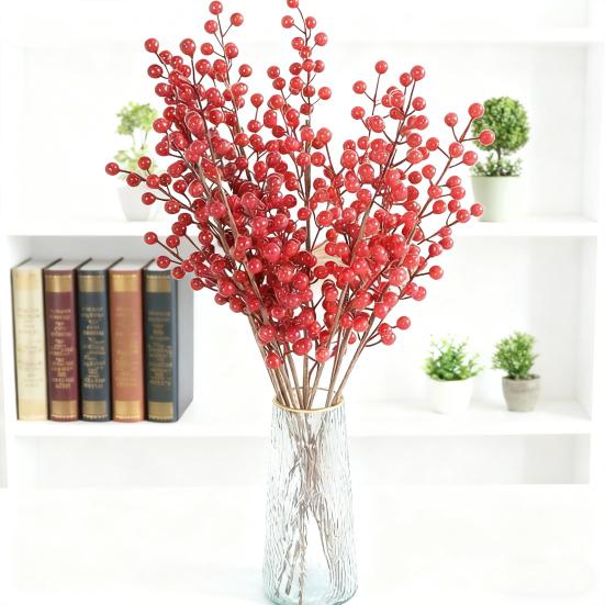 Künstlicher Roter Beerenzweig Weihnachts-Stechpalmenbeerenstiel Falsche Pflanzen Schaumbeerenzweig Weihnachtsfeiertag Hochzeitsfeier Heimdekoration