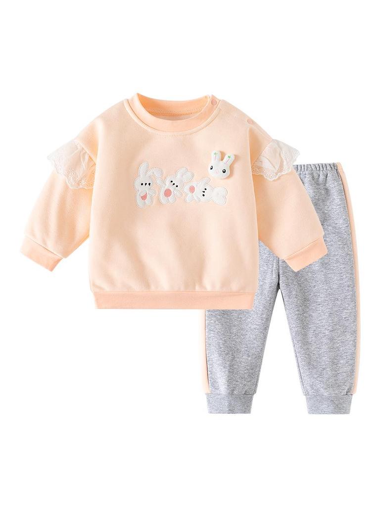 Mädchen Herbst/Winter Plus Samt Sweatshirt Set - Niedliches & Modisches 2-teiliges Outfit für Outdoor-Bekleidung
