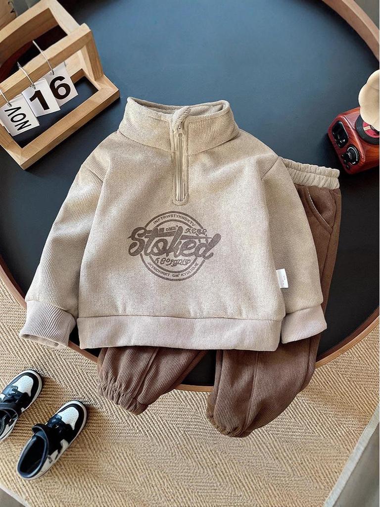 Modisches Herbst-Zweiteiler-Set für Jungen 2025: Lammwolle-Sweatshirt & Cord-Hose