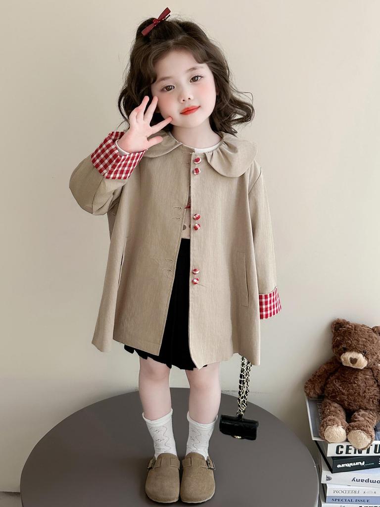 Stilvoller Mädchen-Trenchcoat in mittlerer Länge mit Puppenkragen - Koreanische Mode für Herbst und Frühling