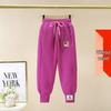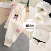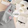 Kuromi Mädchen Fleecegefütterte Sweatpants - Cartoon-Print, Warm & Dick, Bündchen für Frühling/Herbst