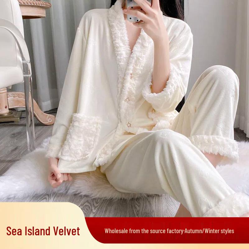 Sea Island Baumwolle Damen Fleece Pyjama Set – Langarm & Hose für Herbst/Winter.