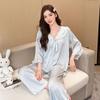 Damen Französische Spitze Langarm Eisseide Pyjama Set - Elegant Frühling/Herbst Haus- & Outdoor-Bekleidung