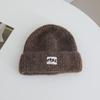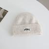 Japanese Simple Letter Pattern Labeling Knitted Hat for Women in Autumn and Winter New Warm and Thickened Cold Hat Showing A Small Face